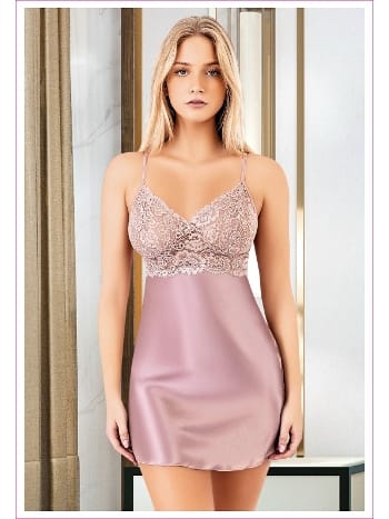 Saten Pudra Dantel İşlemeli Gecelik Miss Laris 2084