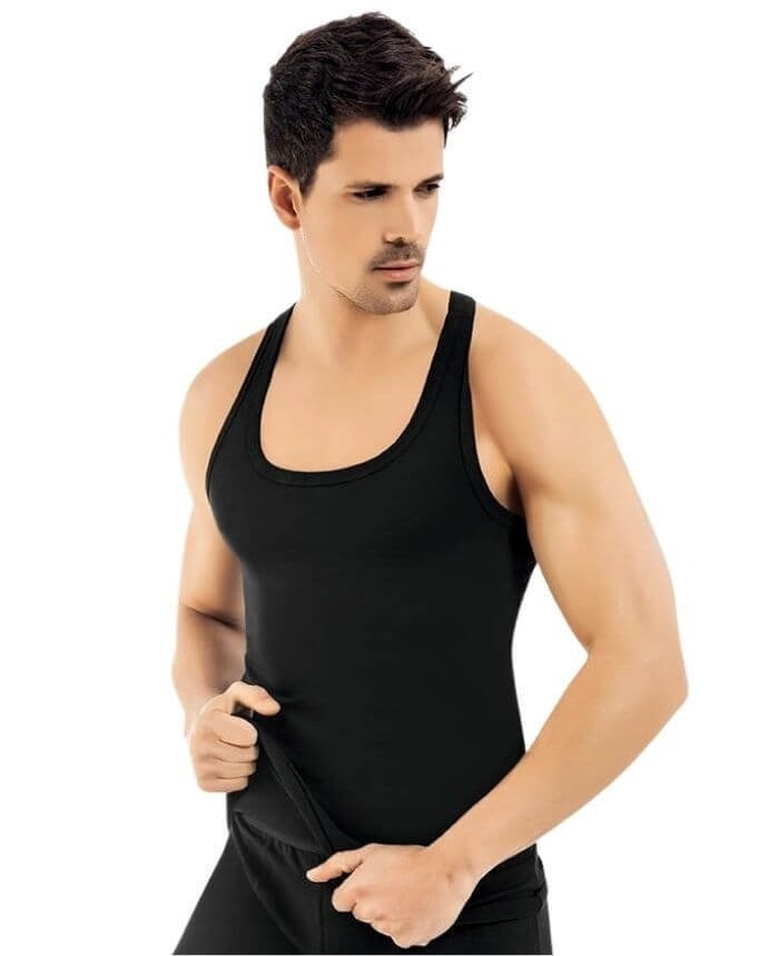 Siyah, gri ve beyaz renk seçenekleriyle sunulan erkek penye atlet, ribana kesimi sayesinde esnek bir uyum sağlar.