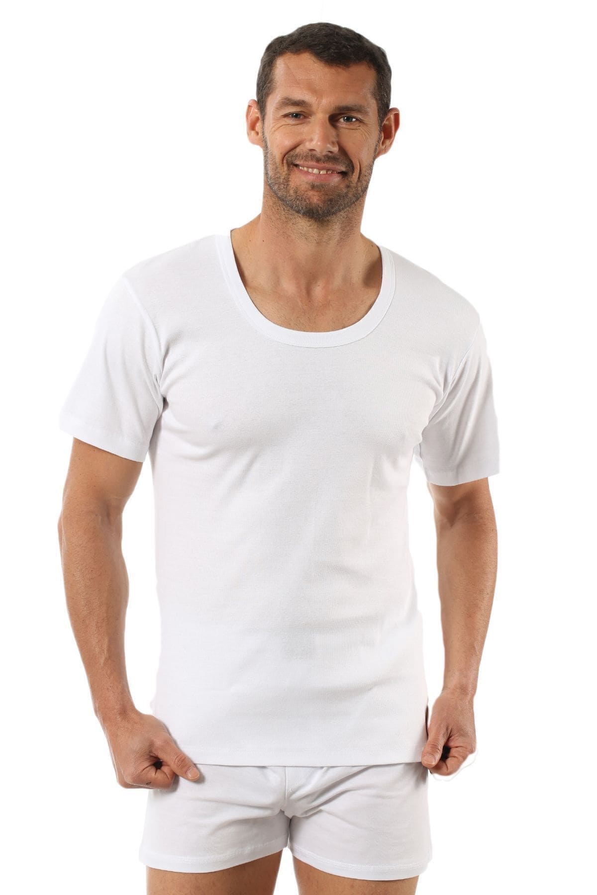 Bej, beyaz ve somon renk seçeneklerine sahip olan bu ribana fanila, geniş yaka kesimi ile rahat bir görünüm sunuyor. %100 Cotton / Pamuk