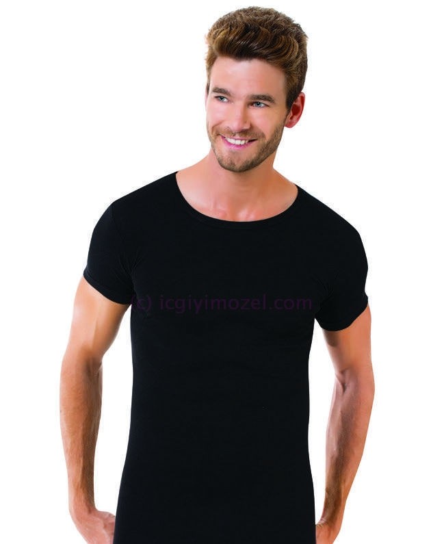 Siyah renkte, ribana dokusu ile esnek bir uyum sağlayan sıfır yaka erkek atlet. %100 pamuk