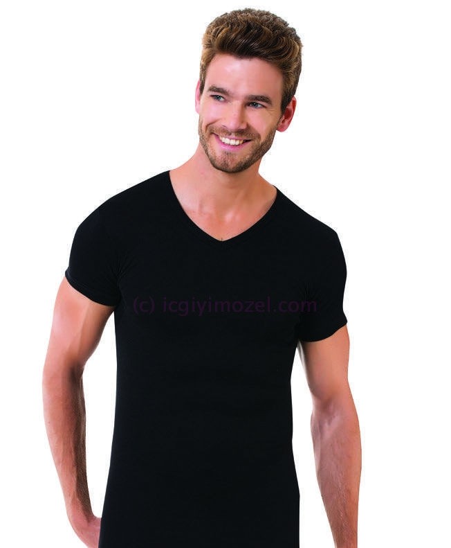 Siyah renkte ribana dokusuna sahip V yaka erkek atlet, rahat kesimiyle günlük giyimde ideal. %100 PAMUK