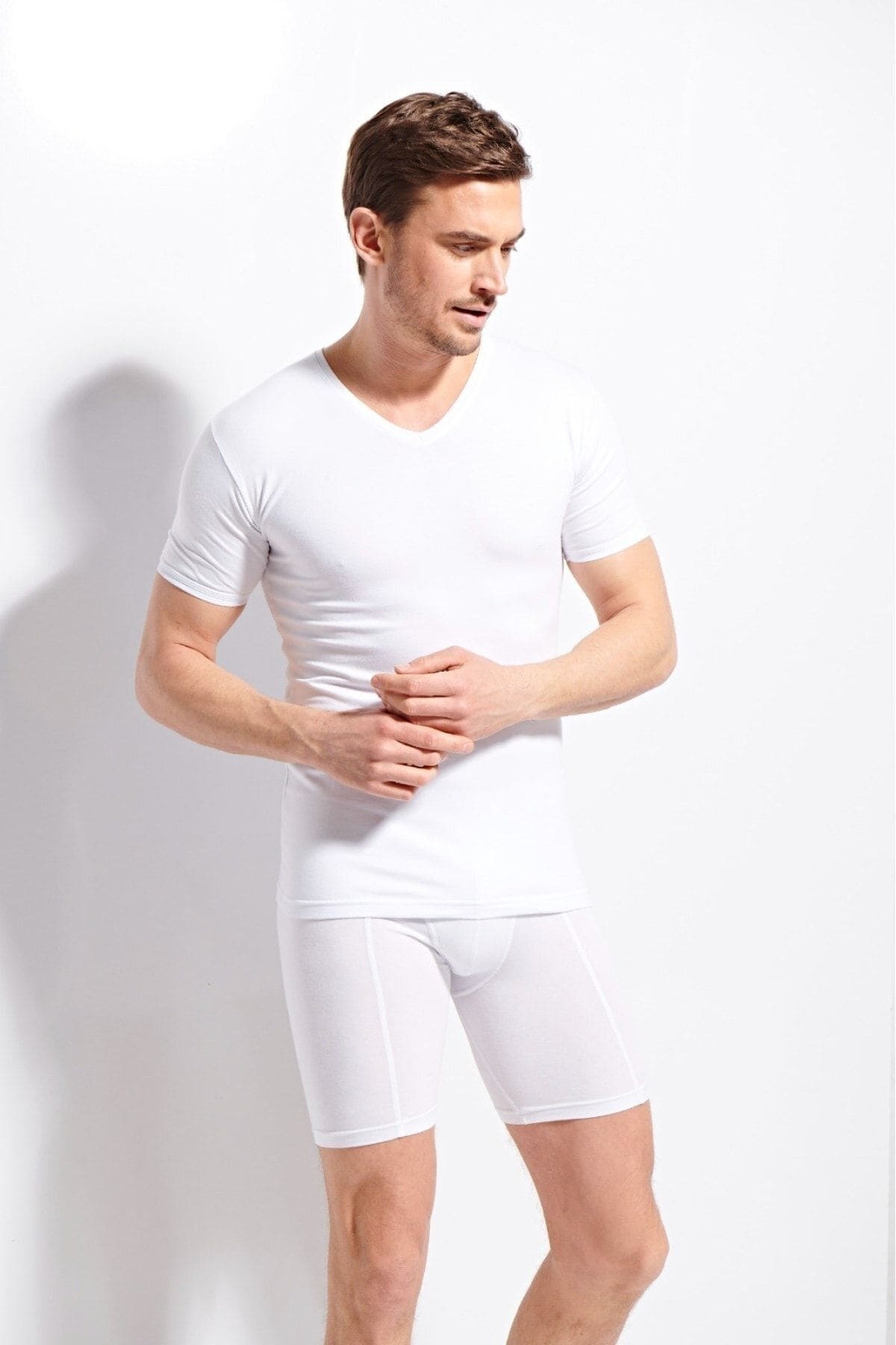 Pamuklu ribana V yaka t-shirt, günlük kullanım için tasarlanmış ideal bir iç giyim parçasıdır. Yumuşak dokusu, ciltle mükemmel bir uyum sağlayarak gün boyu konfor sunar. Günlük giyimde sıklıkla tercih edilen beyaz rengi, her türlü kıyafetle rahatça kombinlenebilir. Üst giyimde şıklık arayan erkekler için mükemmel bir seçenek olan bu t-shirt, hafif yapısıyla yaz sıcaklarında bile serin kalmanızı sağlar.