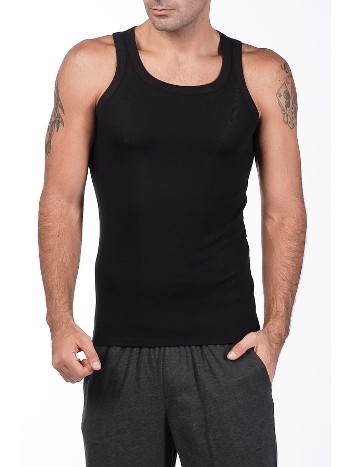 Siyah renkte, ribana detaylı pamuklu askılı atlet. Yumuşak doku ve esnek kesim ile konfor sunuyor. %100 Pamuk