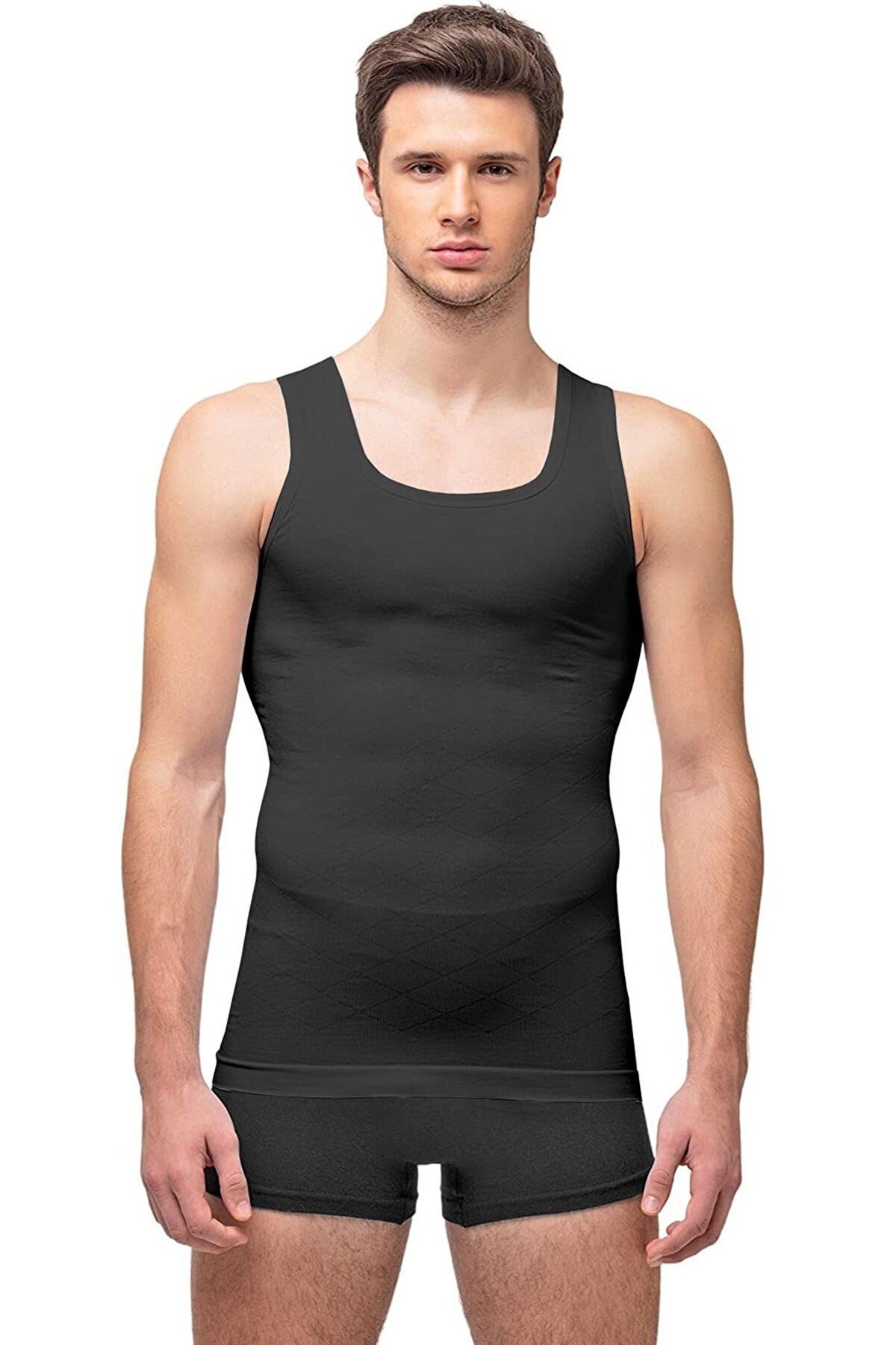 Erkek Toparlayıcı Atlet Korse Elite Life 940, şık V yaka kesimi ve modern tasarımı ile günlük giyimin vazgeçilmez bir parçası haline geliyor. Ribana dokusu, esnek bir uyum sağlarken, atletin vücut hatlarını nazikçe sarmasına yardımcı oluyor. Bu özellik, hem rahat bir giyim deneyimi sunuyor hem de şıklığınızı artırıyor. Siyah ve beyaz renk seçenekleri ise her tarz ve kombin ile uyum sağlayarak, gardırobunuza zenginlik katıyor.