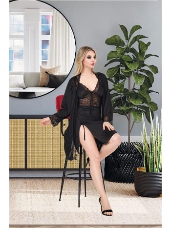 Transparan Dantelli Sabahlık Gecelik Takımı İzabel 6009