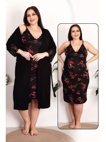 Esnek Kumaşlı Gecelik ve Sabahlık Takımı Lady 19213