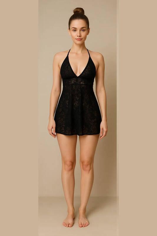 Arkası açık boyundan bağlamalı bu fantazi gecelik, şeffaf dantel dokusu ile göz alıcı bir görünüm sunuyor. Tek parça kesimi, vücut hatlarınızı nazikçe sararak düzgün bir siluet oluşturmanıza yardımcı olur. Beyaz ve somon renk seçenekleri, her zevke hitap ederken, özel gecelerdeki şıklığınızı artırır. Bu tasarım, zarif bir görüntü sağlamanın yanı sıra, kendinizi rahat hissetmenizi de sağlıyor.