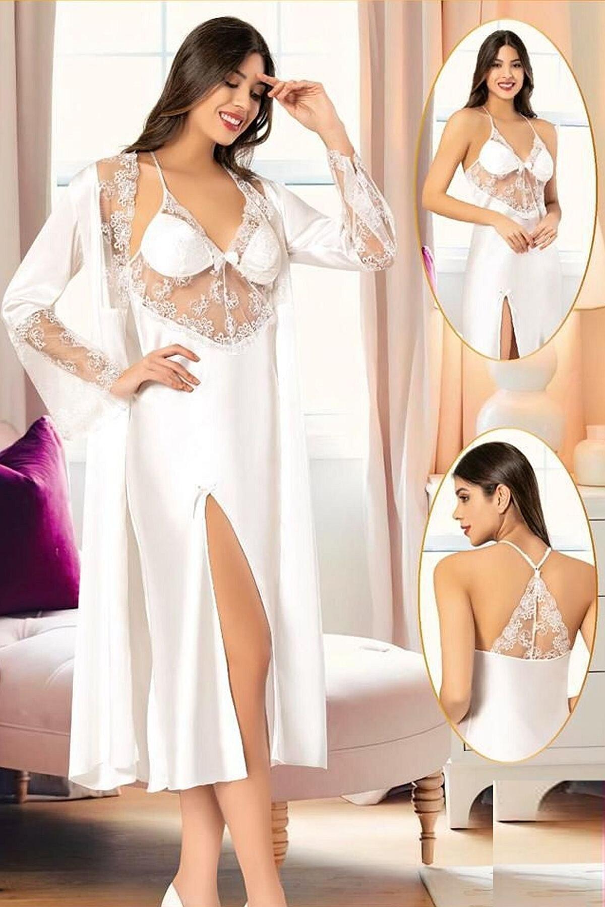 Dayanıklı dikiş detayları ile güçlendirilmiş bu set, uzun ömürlü bir kullanım için tasarlanmıştır. Ürün, estetik görünümünü korurken, aynı zamanda şıklığından ödün vermez. Herhangi bir özel günde veya günlük kullanımda tercih edebileceğiniz bu şık gecelik seti, dolabınızın vazgeçilmez parçalarından biri haline gelecek. Kendinize veya sevdiklerinize hediye edebileceğiniz bu zarif set, her kadının gardırobunda mutlaka bulunmalı.