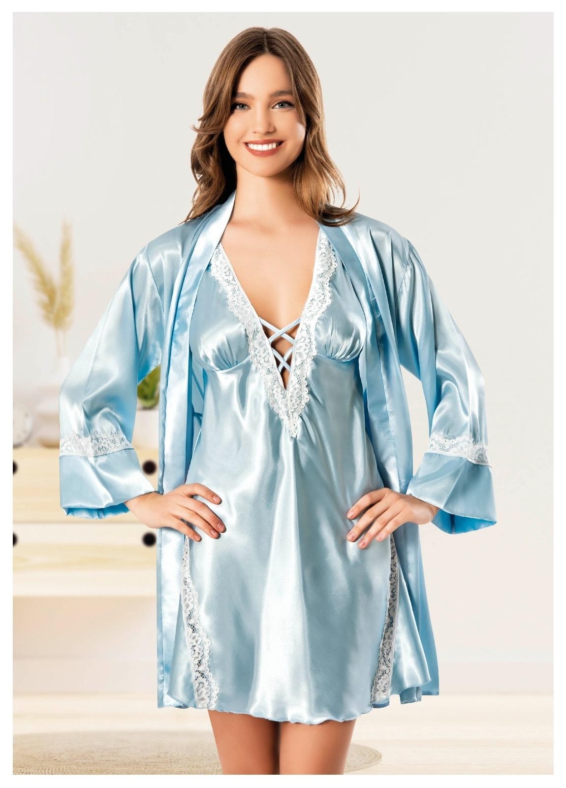Sırtı çapraz askılı dantel detaylı uzun kollu saten sabahlık takımı, hem şıklığı hem de konforu bir arada arayanlar için mükemmel bir seçenek. Yumuşak dokulusaten kumaşı sayesinde cildinize dost bir his sunuyor, bu da onu ev giyimi için ideal hale getiriyor. Ürünün sarı rengi ise enerjik bir hava katarken, dantel detayları da zarif bir görünüm sağlıyor.