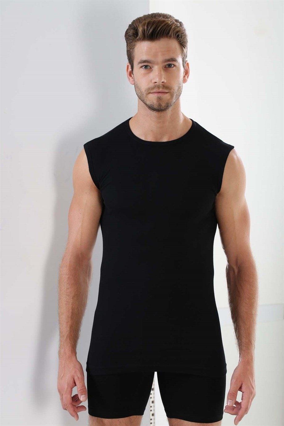 Siyah ribana kumaştan üretilmiş, kolsuz yuvarlak yaka atlet. Esnek dokusu ve modern kesimiyle rahat bir kullanım sunar. %100 Pamuk