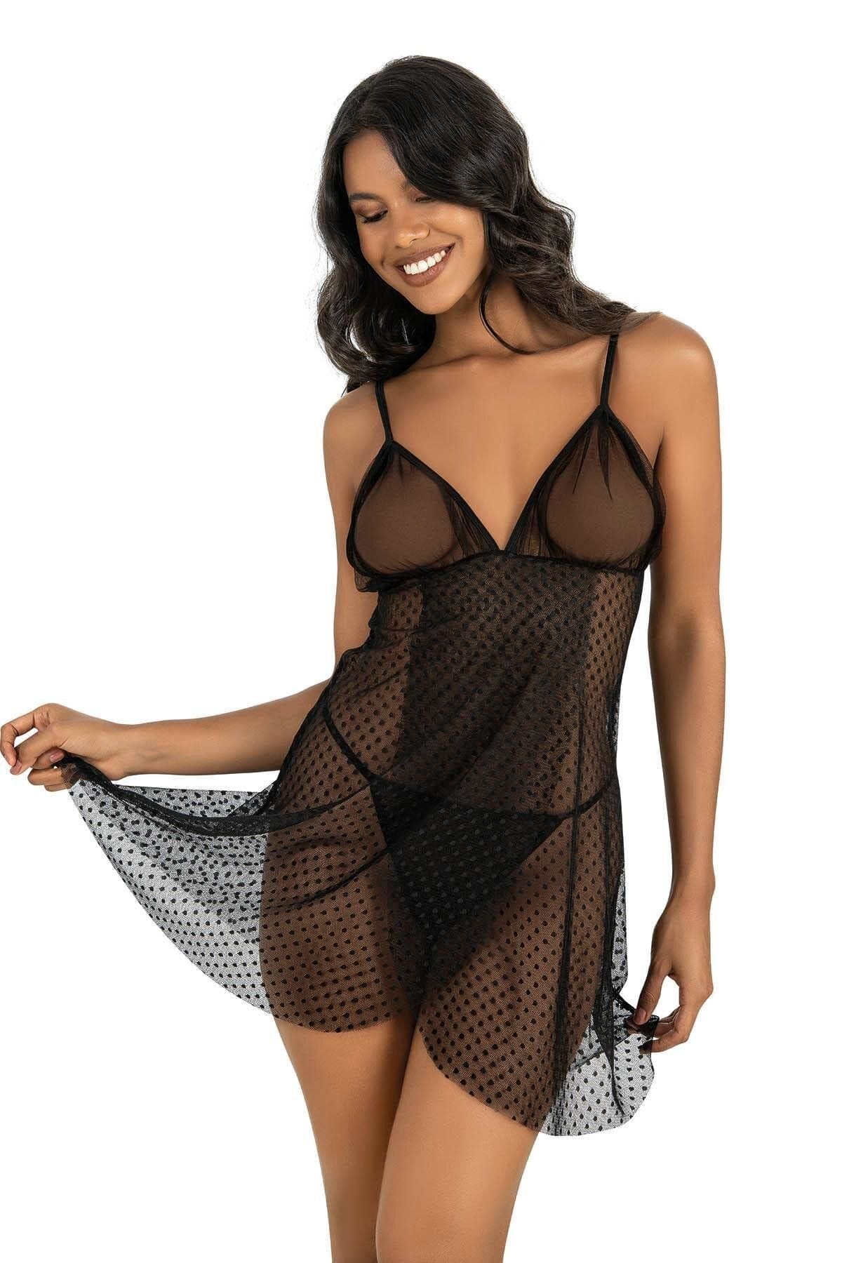 Şıklığı ve konforu bir arada sunan siyah puantiyeli tül gecelik, ince yapısıyla vücutta hafif bir his bırakıyor. Tül malzeme, hava geçirgenliği sayesinde gecenin sıcak günlerinde bile ferah bir uyku deneyimi sağlıyor. Dokusu, cilde doğrudan temas ettiğinde yumuşak bir his vererek rahat bir uyku ortamı sunar.