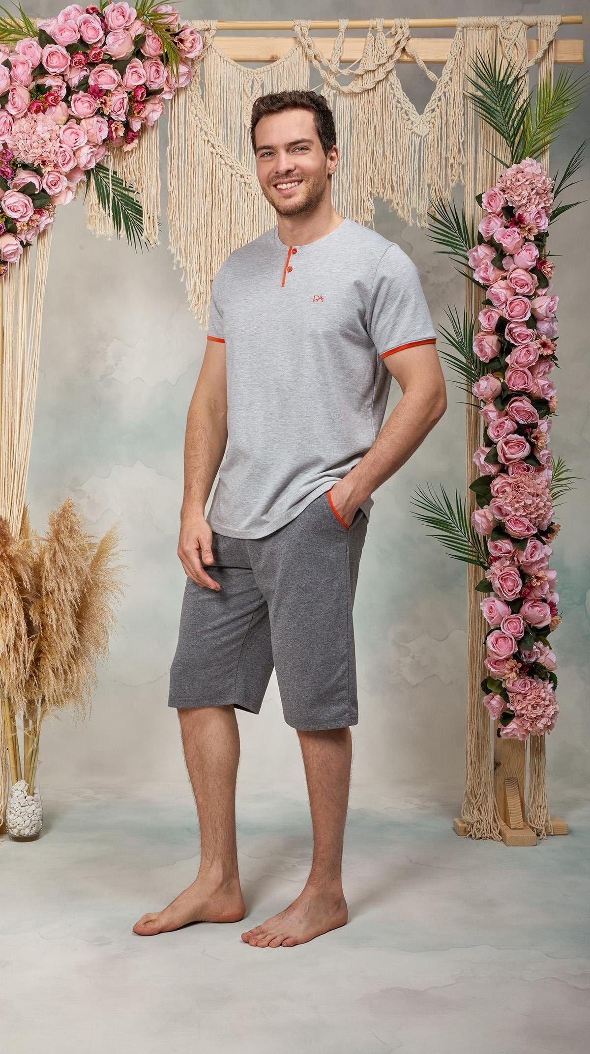 Pijama takımındaki kısa kol ve düğme yaka detayı, katmanlı giyimde pratiklik sunar. Hem evde dinlenirken hem de arkadaşlarınızla geçireceğiniz yaz akşamlarında şık bir görünüm elde etmenizi sağlar. Geniş kesimi, hareket özgürlüğü sunarak spor yaparken veya gün içinde ev aktiviteleri gerçekleştirirken rahatça kullanılabilir. Rahat bir kesime sahip olması, bu takımı günlük kullanım için ideal kılar.