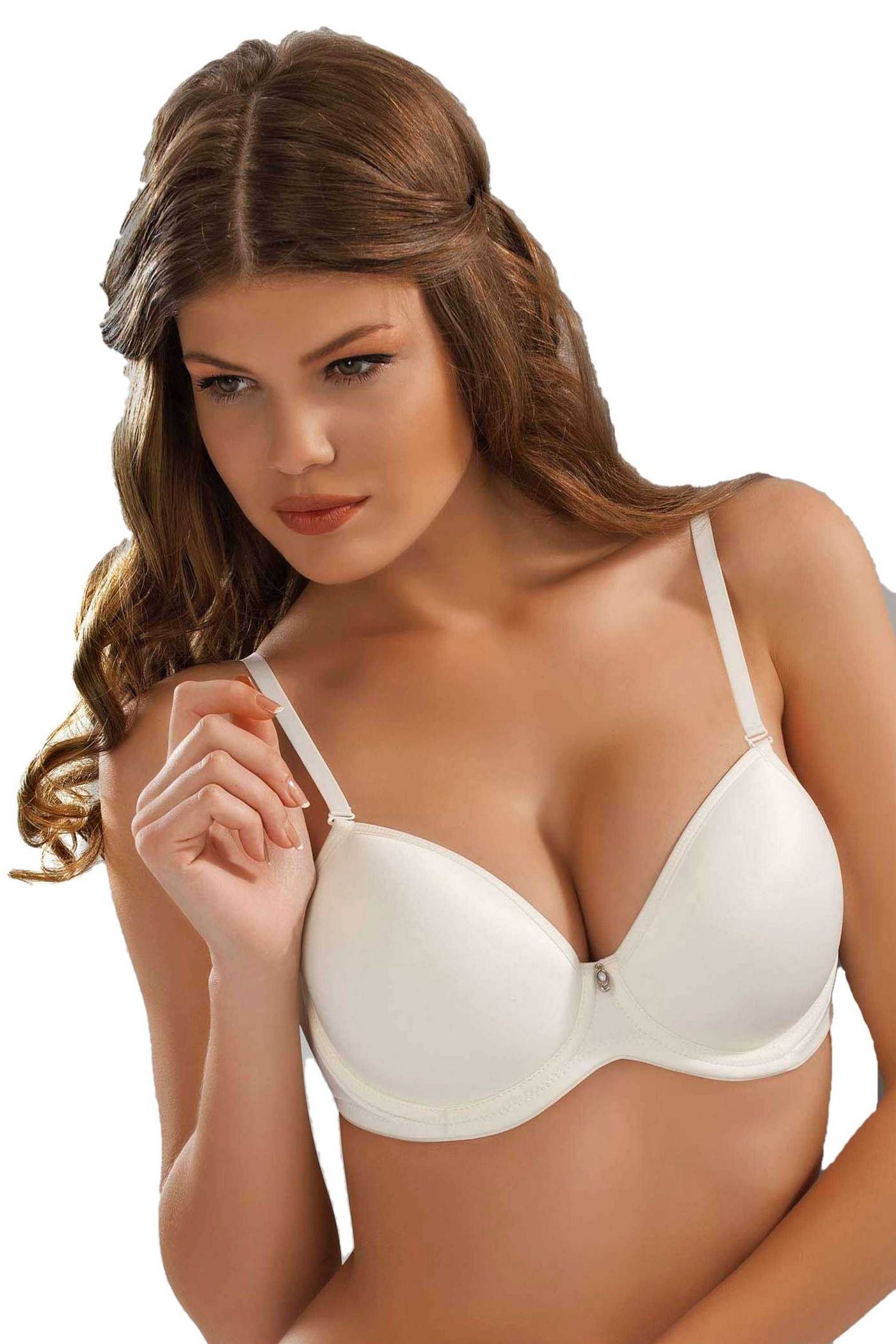Tam kap yapısı göğüsleri eksiksiz şekilde kavrar ve yuvarlak bir form verir, bu da ince tişörtlerin altında dahi düzgün bir görünüm sağlar. %90 polyester ve %10 elastan karışımı kumaş, yumuşak bir his verirken yeterli esnekliği korur, böylece gün boyu rahatlık sunar. Yan panellerin genişliği, göğüslerin yana kaçmasını önleyerek daha iyi bir toparlama etkisi yaratır.