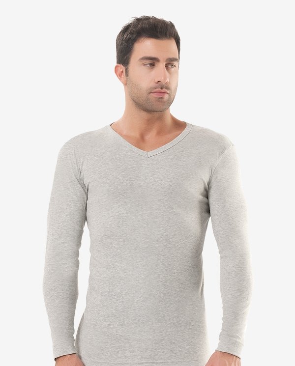 Gri melanj veya antrasit renkte, fırçalı iç yüzeye sahip, esnek kesimli termal içlik. %50 COTTON, %50 PES