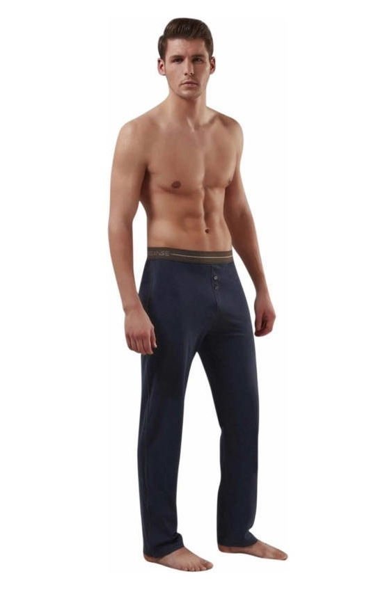 Lacivert renk, pamuklu dokusu ve bilek manşetleri ile tasarlanmış uzun pantolon. %100 Pamuk