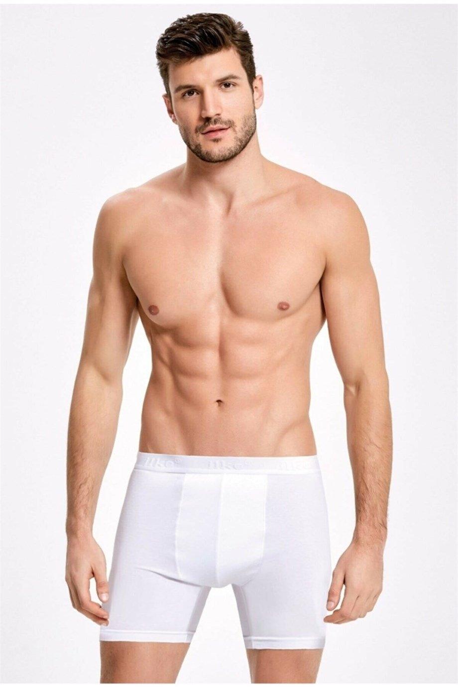 Beyaz, likralı uzun paçalı boxer, yumuşak pamuk dokusu ile konfor sunar. %93 Pamuk, %7 Elastan