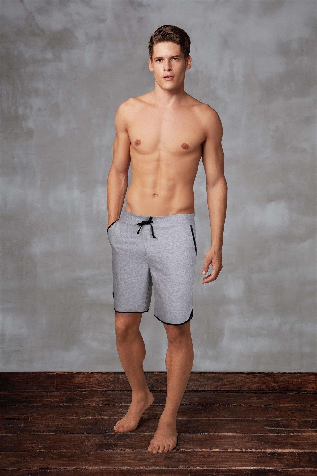 Gri tonlarında, yan cepli ve uzun paçalı şort, yumuşak penye kumaşıyla rahat bir kullanım sunuyor.