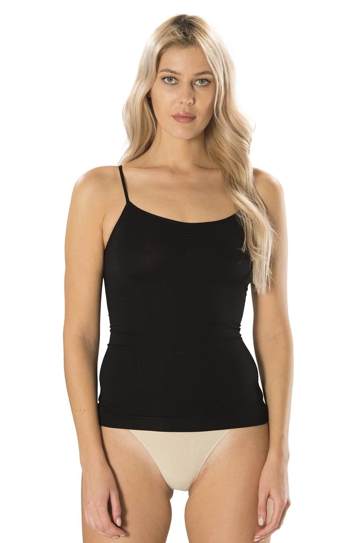 Siyah ve beyaz renk seçenekleriyle vücuda oturan ip askılı atlet, hafif dokusu ile dikkat çekiyor. %90 Poliamid, %10 Elastan