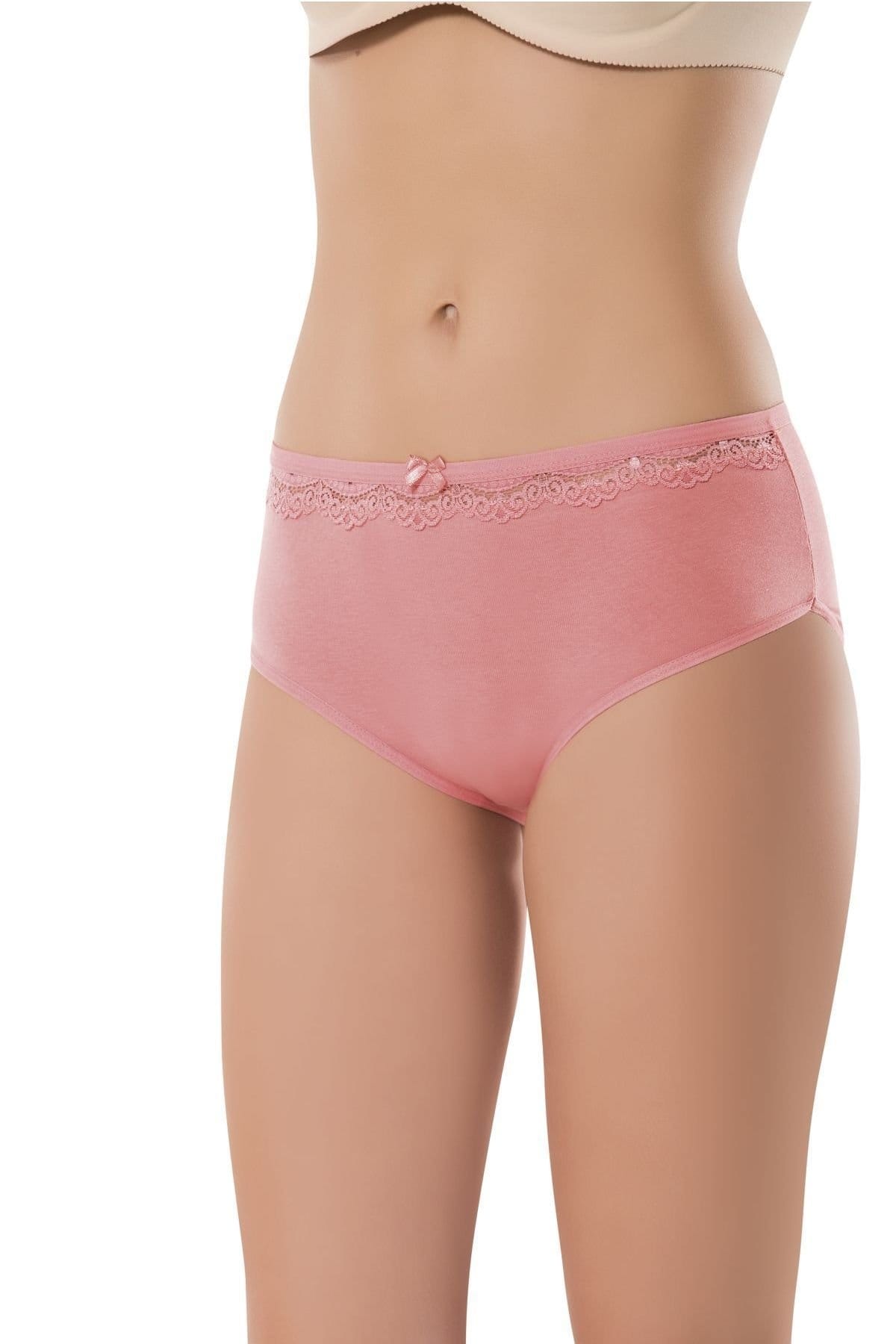 Mor ve somon renklerinde, dantel detaylı yüksek bel yapısı ile konfor sunan kadın külot. %92 Cotton, %8 Lycra