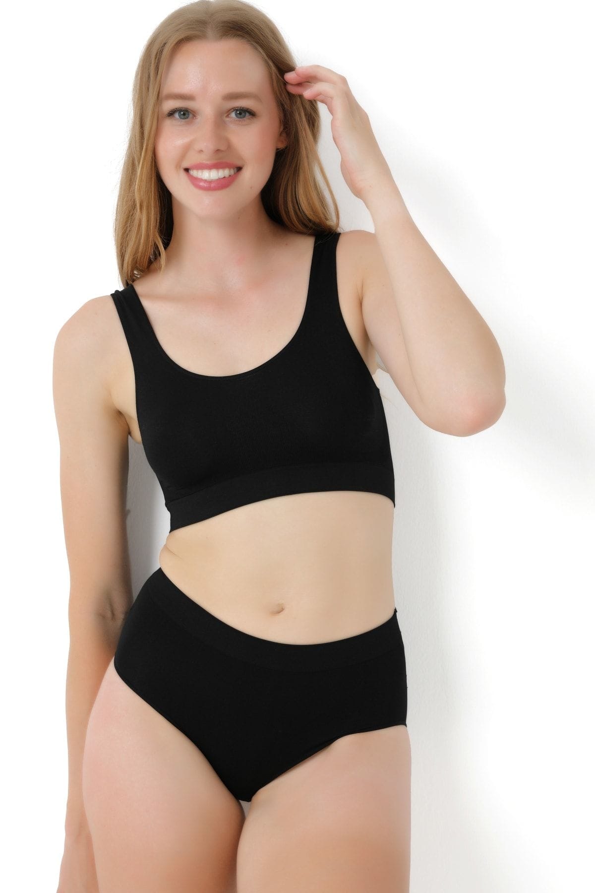 Dikişsiz tasarımı ve yüksek bel yapısıyla öne çıkan, beyaz ve siyah renk seçeneklerine sahip rahat bir külot. %90 Poliamid, %10 Elastan
