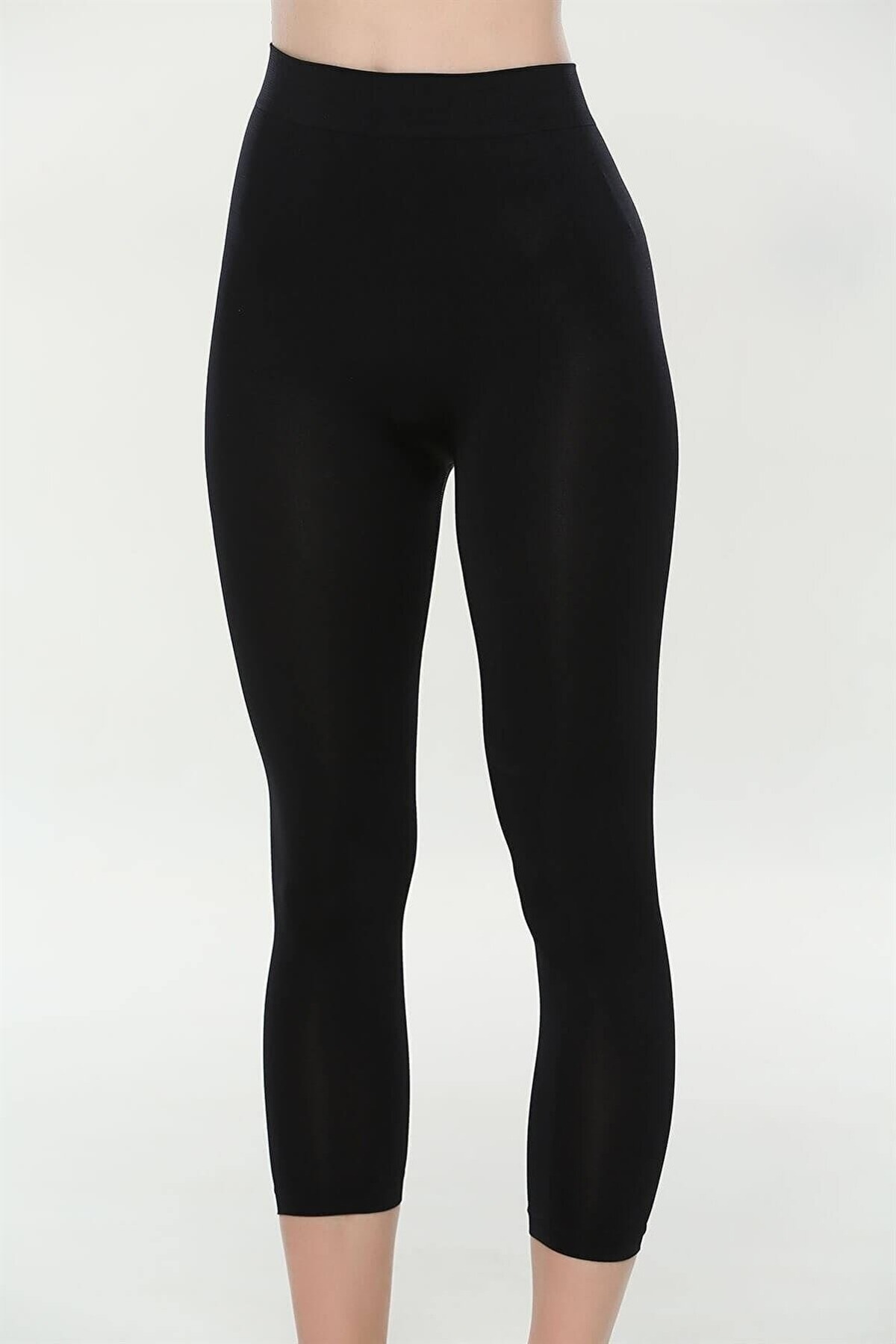 Siyah renkte, dikişsiz ve yüksek bel tasarımıyla konfor sunan maxi tayt.