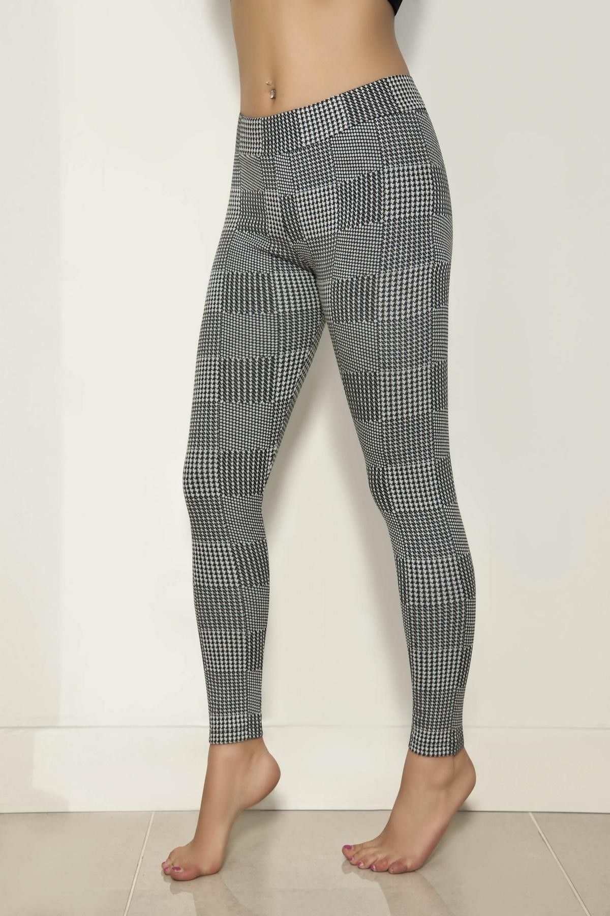 Siyah tonlarında, jakarlı desenli, yüksek bel kadın tayt. Yüksek elastan içeriği ile konfor ve esneklik sunar.