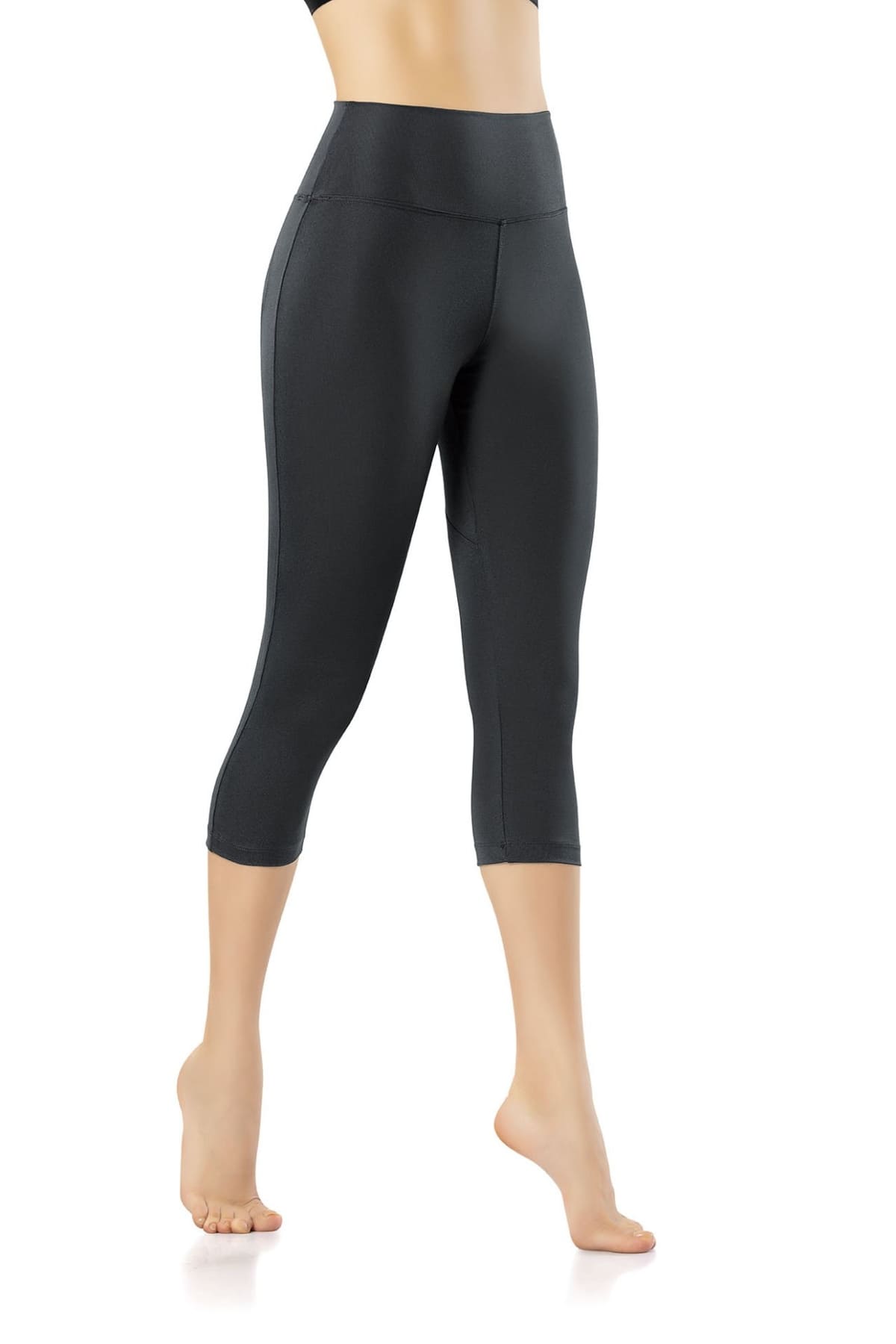 Somon rengi, yüksek bel kesime sahip, esnek dokuya sahip kapri tayt.