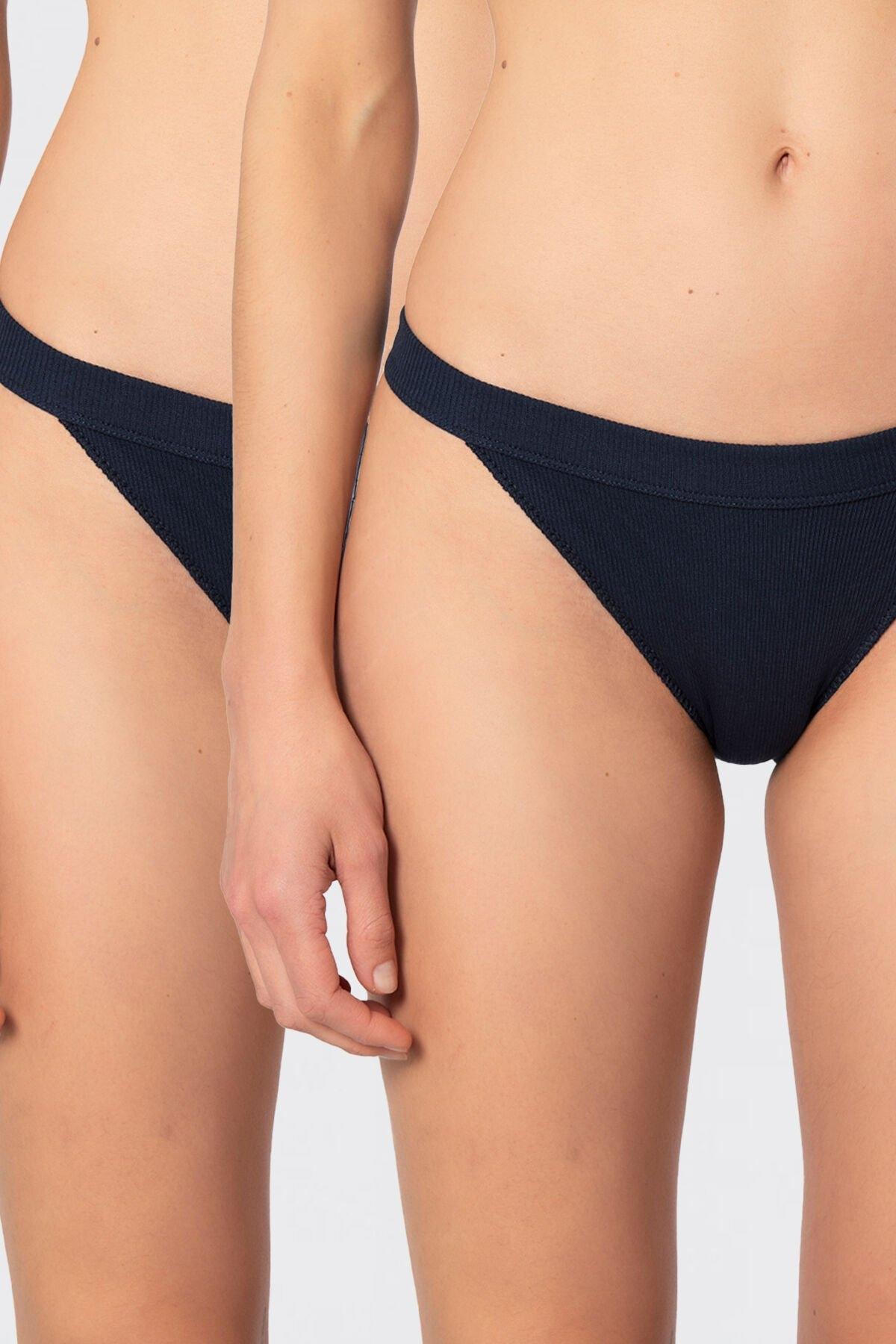 Ekru tonlarında, geniş lastikli yüksek bel ribana külot seti, konforlu bir kullanım sunar. %95 Pamuk, %5 Elastan