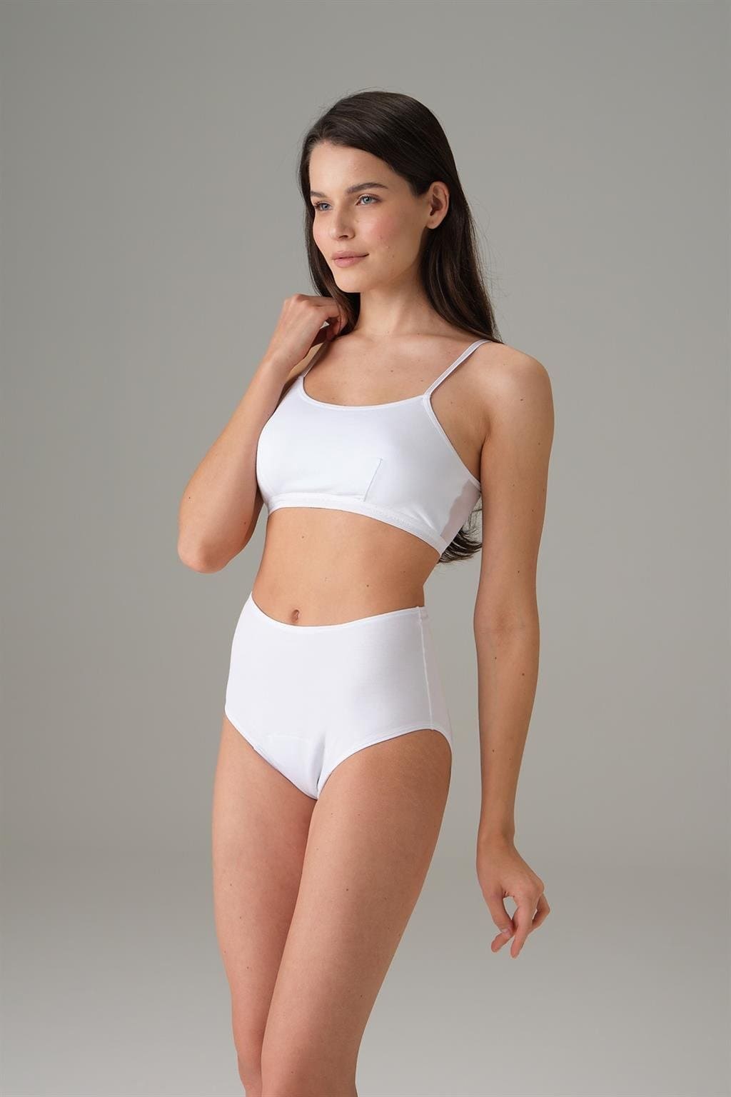 Yüksek bel yapısıyla karın destekleyen slip külot, esnek dokusu ve dikiş detaylarıyla konfor sunuyor. Beyaz, siyah ve somon renk alternatifleriyle.