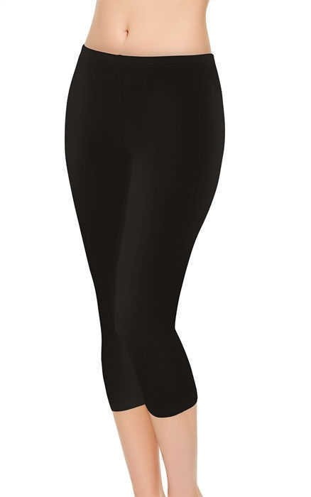 Siyah tonlarda, yüksek bel kesim, modal ve pamuk karışımıyla esnek, hafif kapri tayt. %46 Modal, %46 Pamuk, %8 Elastan
