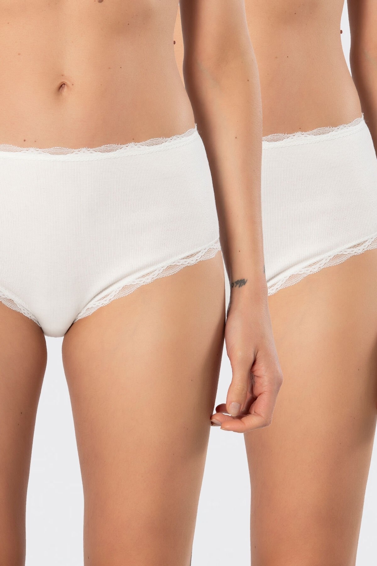 Ten renginde, yüksek bel yapısına sahip, elastik dantel detaylı kadın külot seti. Rahat kesim ve modern görünüm sunuyor. %95 Pamuk, %5 Elastan