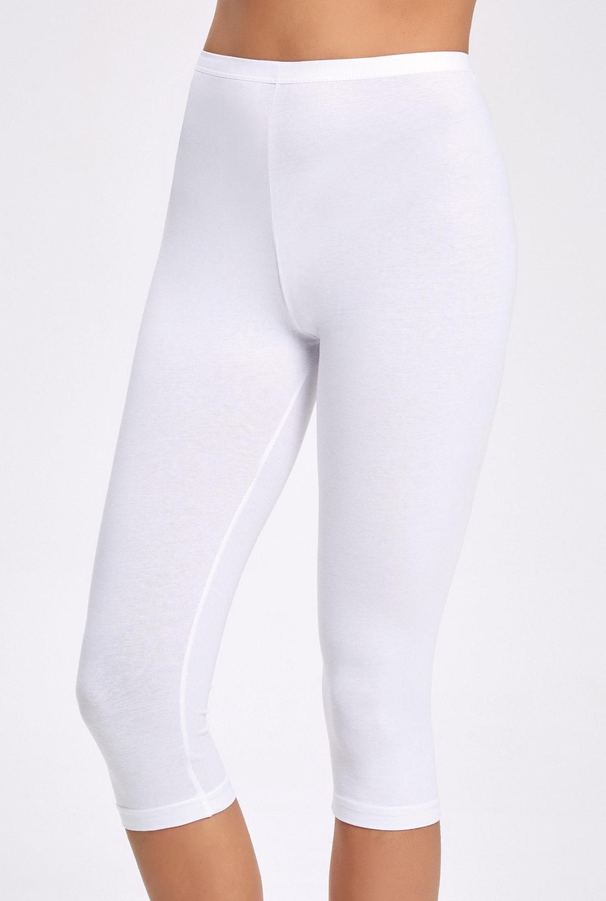 Beyaz renkte, yüksek bel tasarımı ve geniş bel bandı ile konfor sunan kapri tayt. %93 Pamuk, %7 Likra