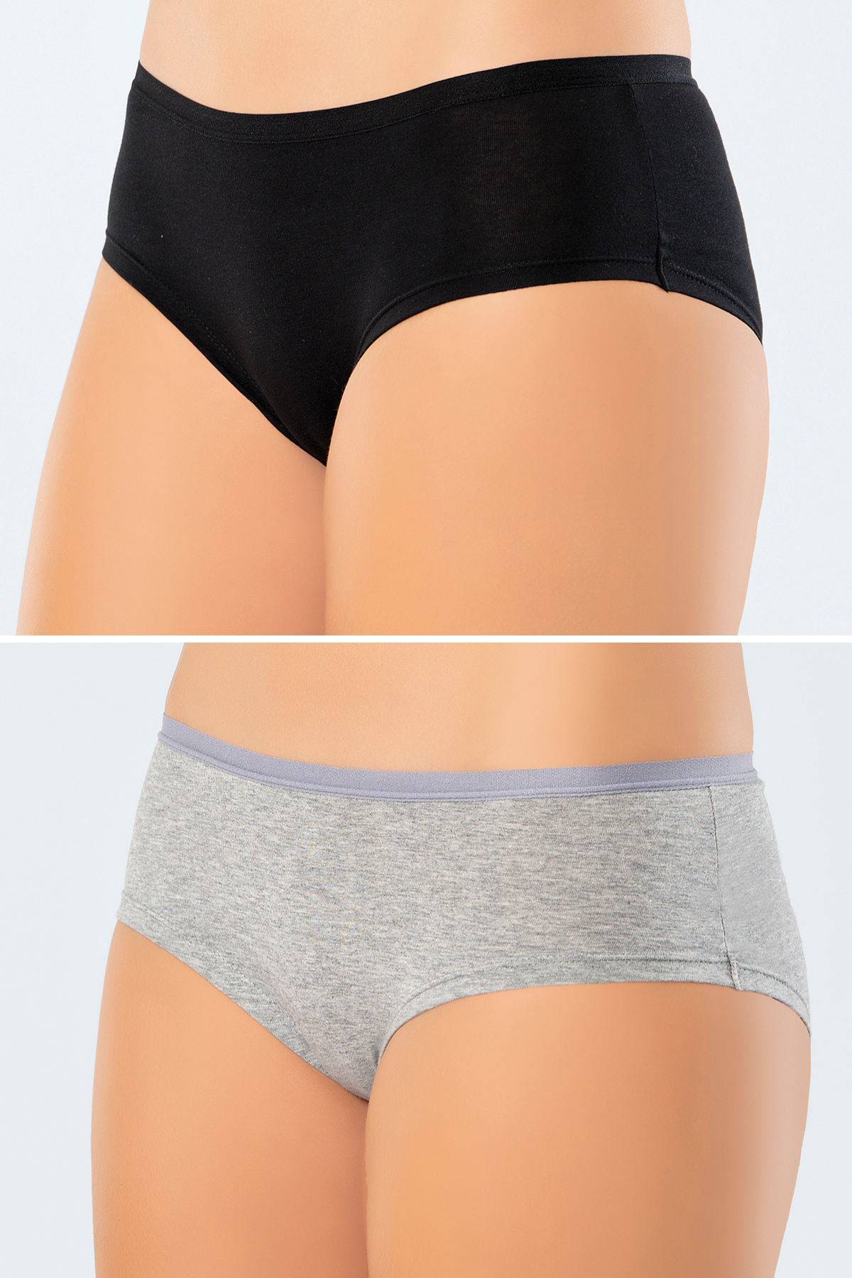 Siyah ve gri tonlarında, %100 pamuklu dokusu ile rahat bir his sunan yüksek bel külotlar. Esnek yapılarıyla mükemmel oturuş sağlar. %95 Pamuk, %5 Elastan