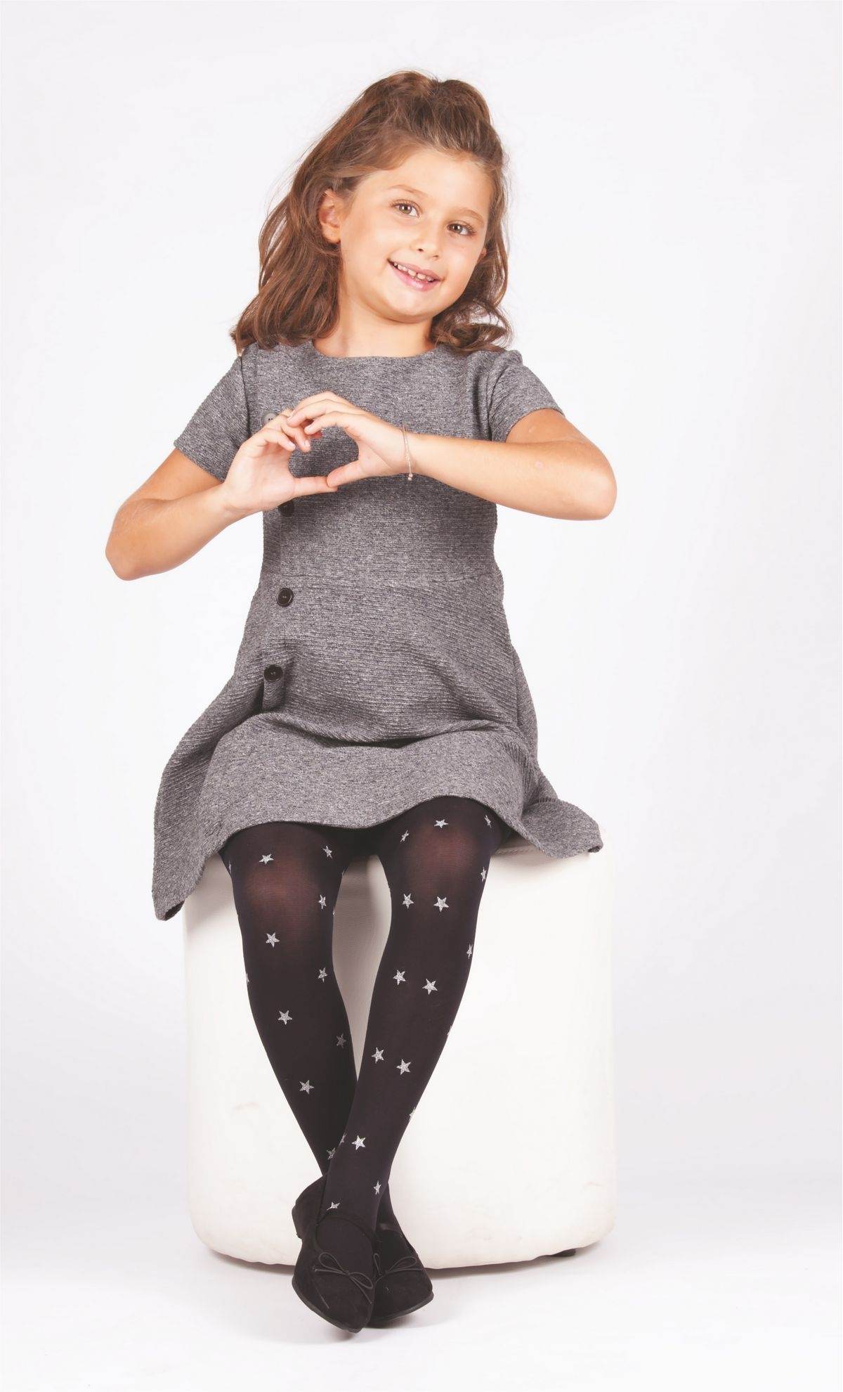 Siyah, beyaz ve pembe renk seçeneklerine sahip, yumuşak dokulu çocuk külotlu çorap.