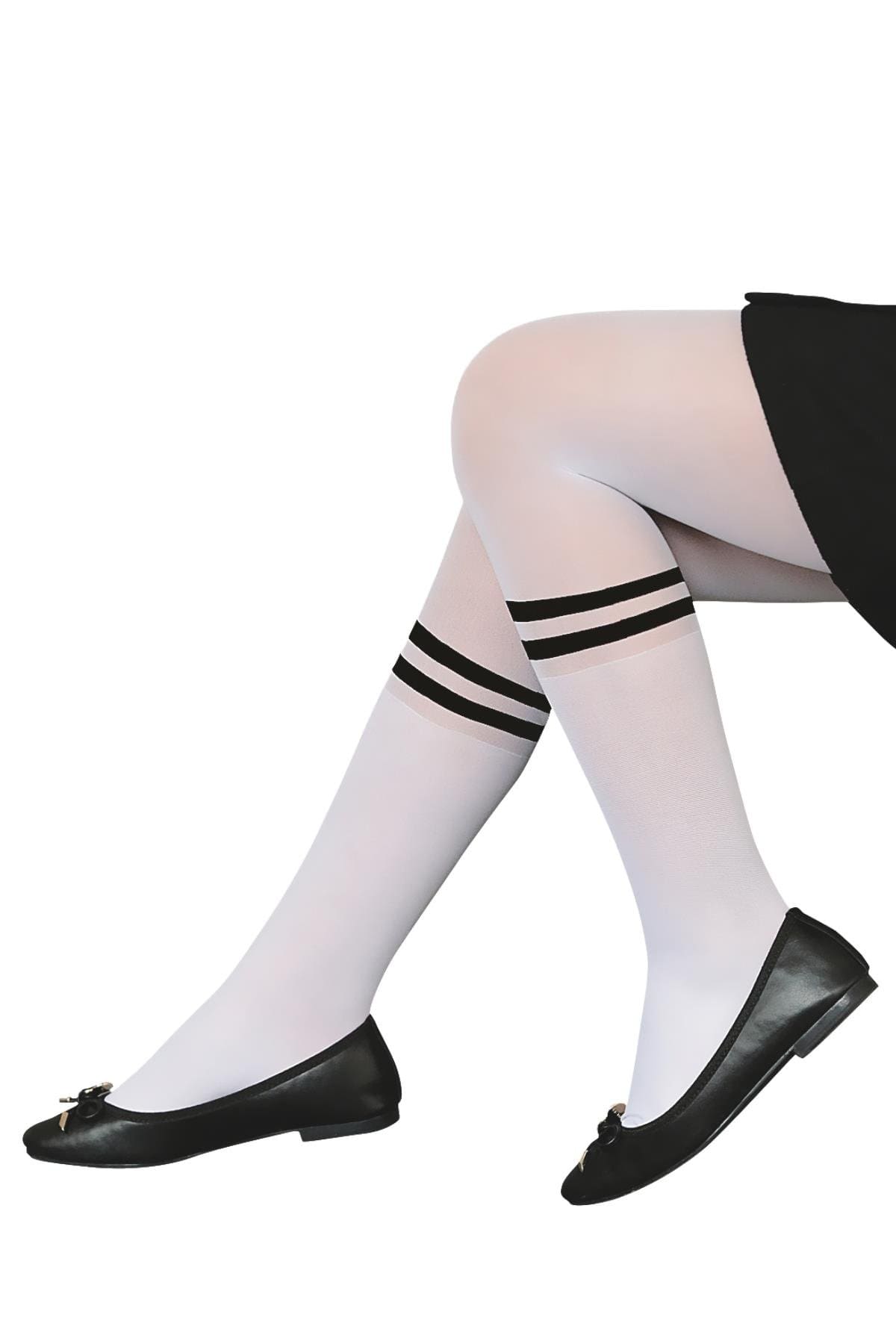 Beyaz renkte, yumuşak dokulu kaydırmaz tabanlı çocuk külotlu çorap. %87 Polyamide, %13 Elastane