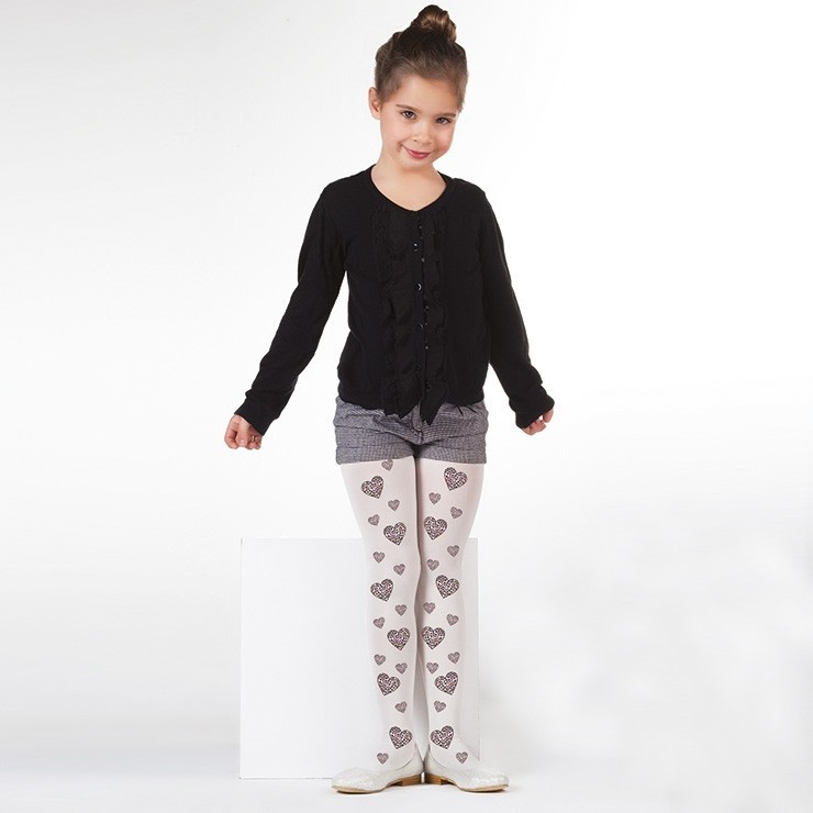 Beyaz renkte, yüksek pamuk oranına sahip, kaydırmaz tabanlı çocuk külotlu çorap. %91 polyamide, %9 elastane