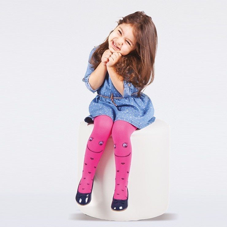 Fuşya, sarı, kırmızı tonlarında, yumuşak dokulu ve kaydırmaz tabanlı çocuk çorap. %86 polyamide, %14 elastane