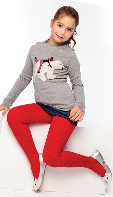 Kemik, beyaz ve pembe tonlarında, elastik yapısıyla rahat bir kalıp sunan desenli çocuk çorabı. %60 PAMUK, %33 Polyamide, %7 Elastane