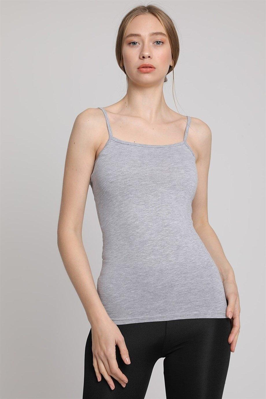 Gri renkte, ip askılı tasarımıyla hafif dokusu ve esnek yapısıyla günlük kullanıma uygun bir atlet. %93 Pamuk, %7 Likra