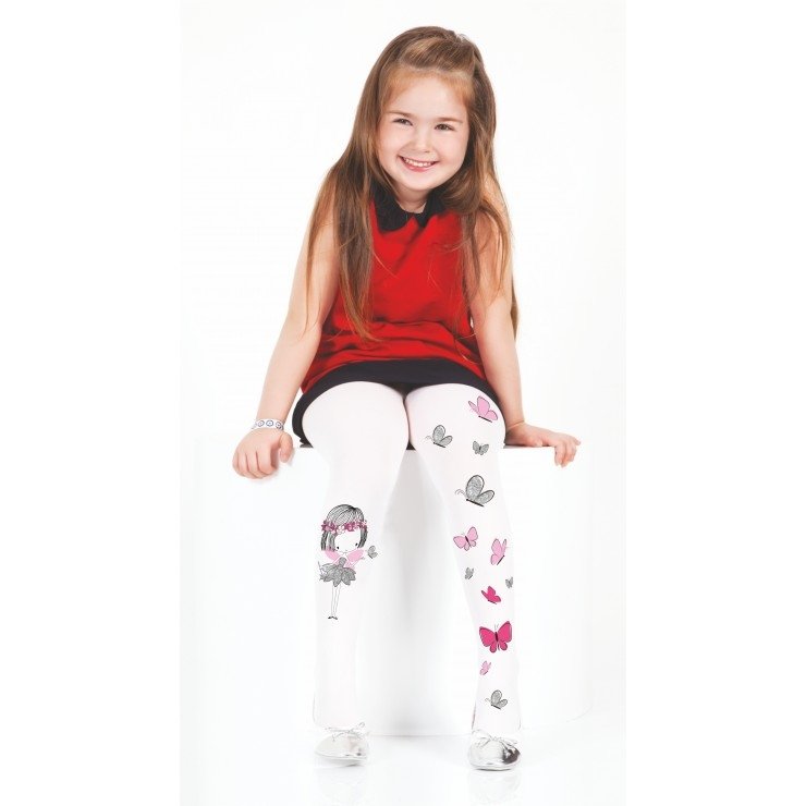 Beyaz renkte, yüksek pamuk oranına sahip, kaydırmaz tabanlı çocuk külotlu çorap.