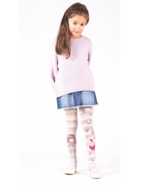 Beyaz tonlarında, yüksek pamuk oranına sahip, konforlu kesim ve kaydırmaz tabana sahip çocuk külotlu çorap.