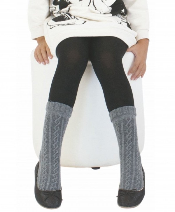 Beyaz ve gri tonlarıyla, yüksek pamuk oranına sahip kaydırmaz tabanlı çocuk külotlu çorap.