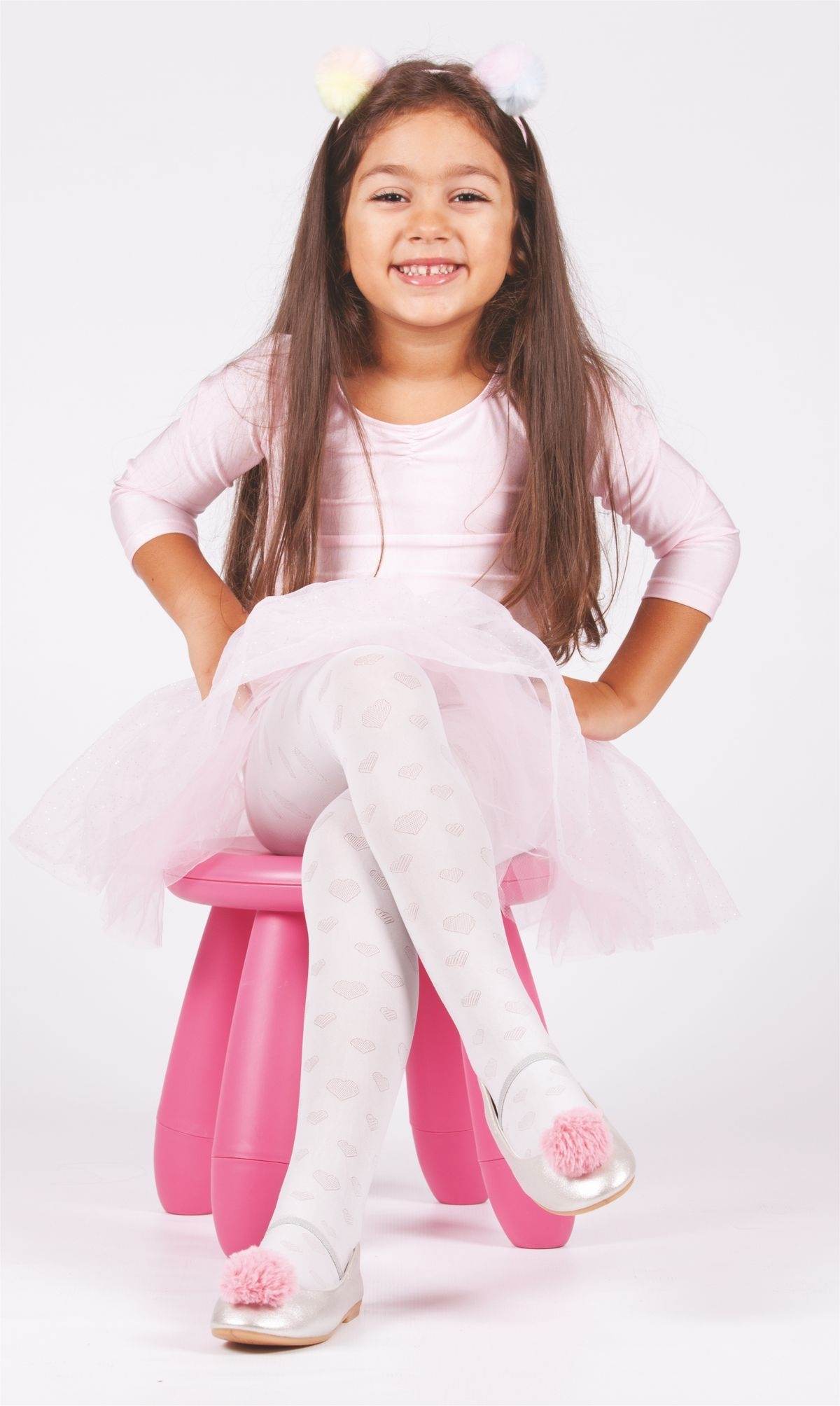 Siyah, pembe ve beyaz tonlarında, kalp desenli, kaydırmaz tabanlı çocuk külotlu çorap.