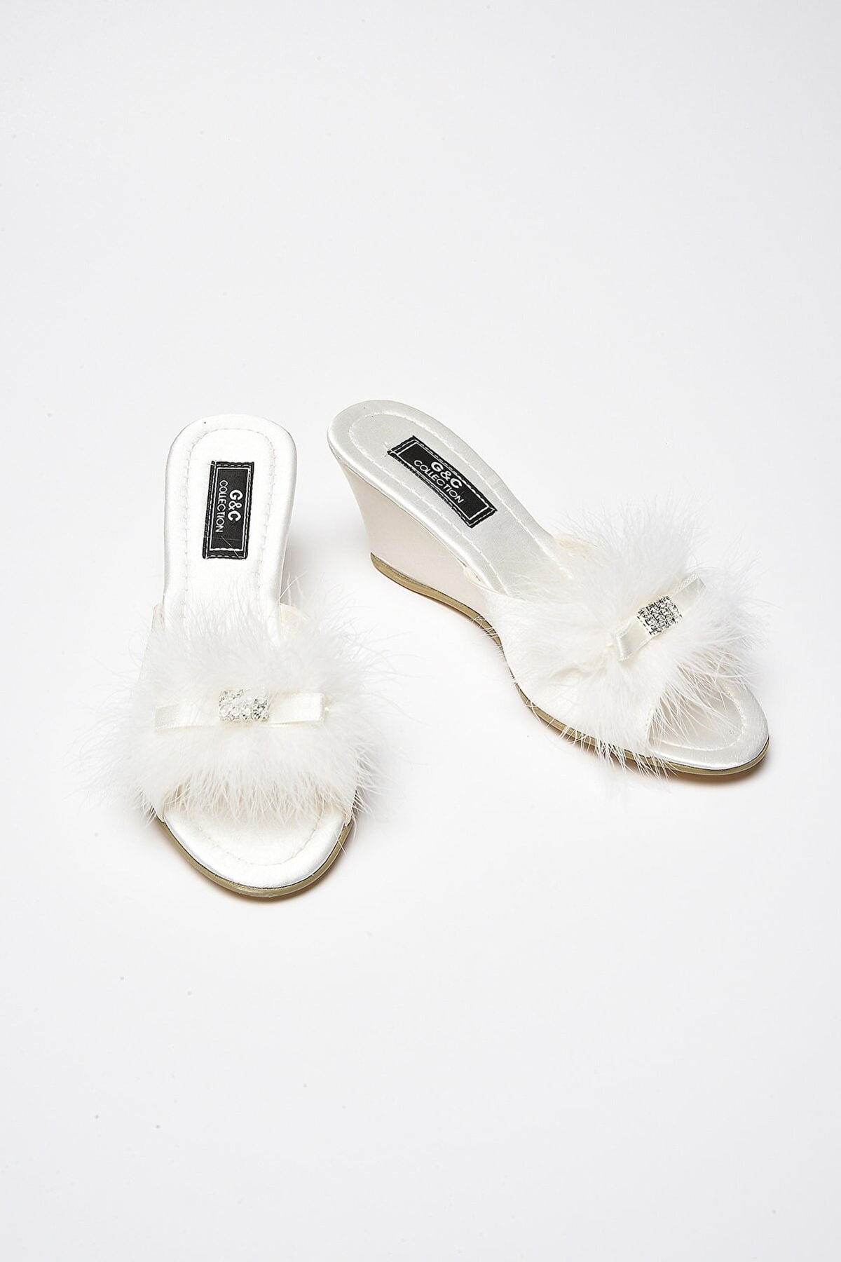 Yüksek tabanlı, şık çeyiz terliği. Siyah-gri, somon ve ten renk seçenekleriyle dikkat çekiyor.